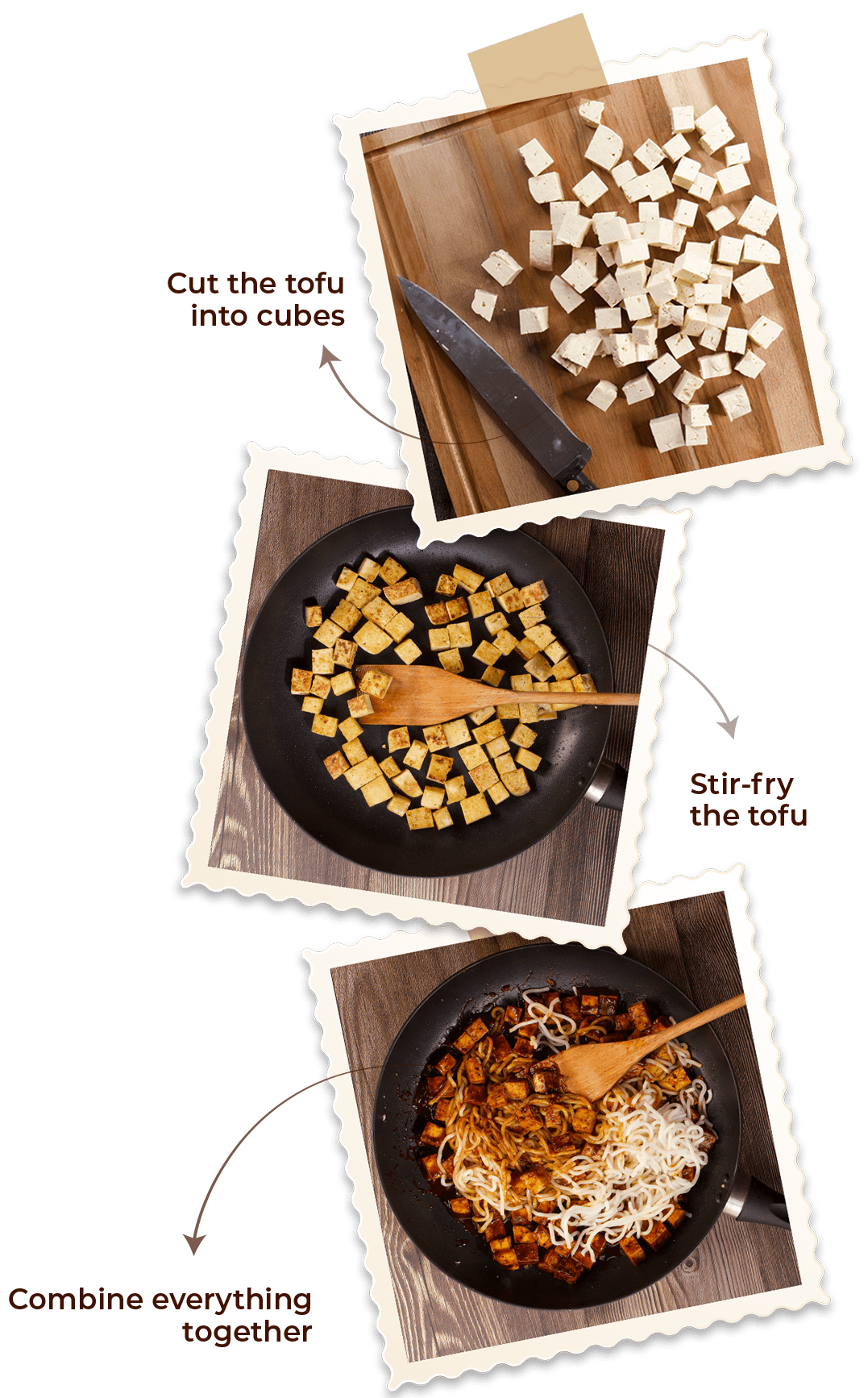 • Add the cooked ramen noodles to the tofu and sauce mixture. Toss everything together until well combined and heated through.